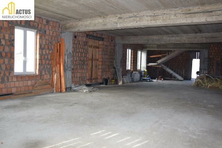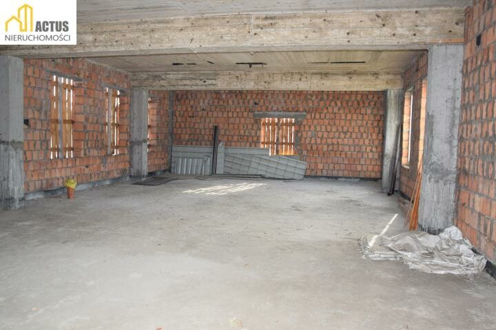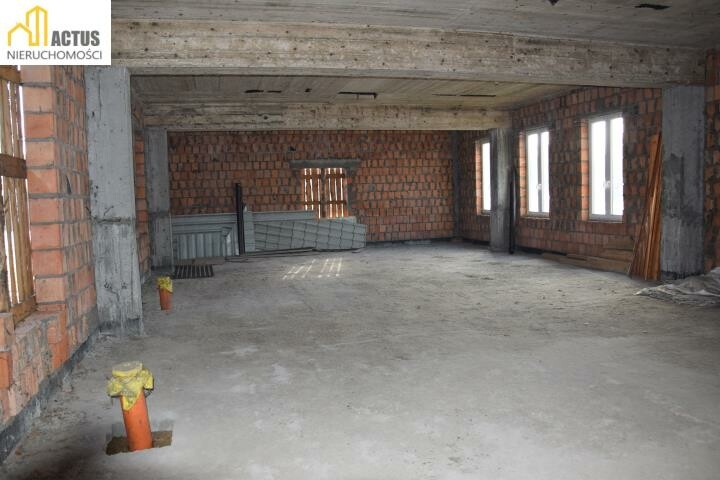 Budynek nr. 1 - w stanie surowym w kształcie litery L o łącznej powierzchni użytkowej 568 m2 z przeznaczeniem na przychodnię, dom weselny, dom seniora, motel, pensjonat, pod działalność gospodarczą lub indywidualne przeznaczenie. - rozłożenie pomieszczeń wg projektu: parter: część restauracyjna, sala taneczna, kuchnia, szatnia, toalety, pomieszczenie socjalne poddasze: 8 pokoi wraz z łazienkami, pomieszczenie biurowe. Obok budynku dodatkowe miejsce na biuro, magazyn, miejsca parkingowe. Łączna powierzchnia użytkowa to 568 m kw.