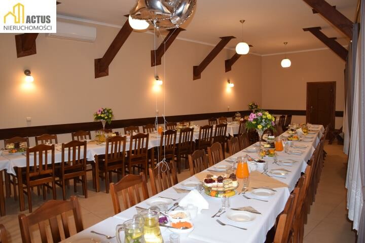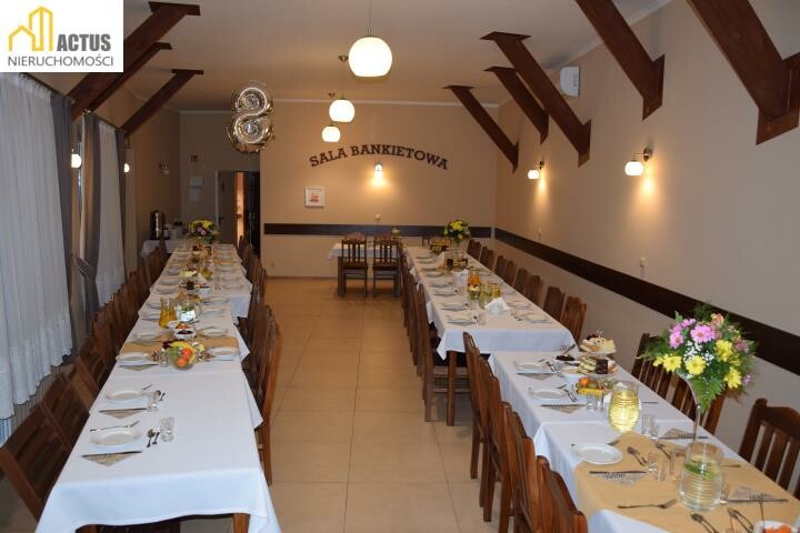 Budynek nr. 2 - restauracja - obecnie prowadzona działalność gastronomiczna, budynek restauracyjny składa się: - sala bankietowa, sala kominkowa, część barowa, pomieszczenia kuchenne, pomieszczenie socjalne, toalety o łącznej powierzchni 183 m kw wraz z przylegającym ogródkiem i miejscem parkingowym. Budynek w którym znajduje się restauracja działa od poniedziałku do niedzieli 7 dni w tygodniu, ponadto są organizowane przyjęcia weselne, okolicznościowe, osiemnastki. 3. Nieruchomość gruntowa o powierzchni około 0,5 ha bezpośrednio przylegająca do nieruchomości zabudowanej. Dodatkowym atutem tej nieruchomości jest lokalizacja: - nieruchomość zlokalizowana przy obwodnicy Proszowic oraz drogi wyjazdowej w kierunku Słomnik - 25 minut